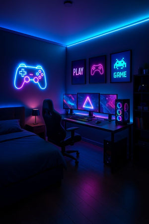 Parce qu’un bon setup ne se limite pas seulement au matériel, l’ambiance visuelle joue un rôle essentiel. Nos bandes LED RGB et nos néons design sont pensés pour apporter une atmosphère unique à votre espace, que ce soit pour des sessions de jeu intenses, du streaming ou simplement pour profiter d’une décoration moderne et immersive.