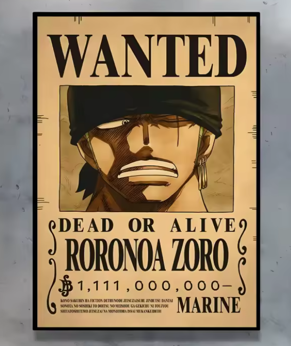 Affiche Zoro One Piece – Prime de Roronoa Zoro (1 111 000 000 Berrys)