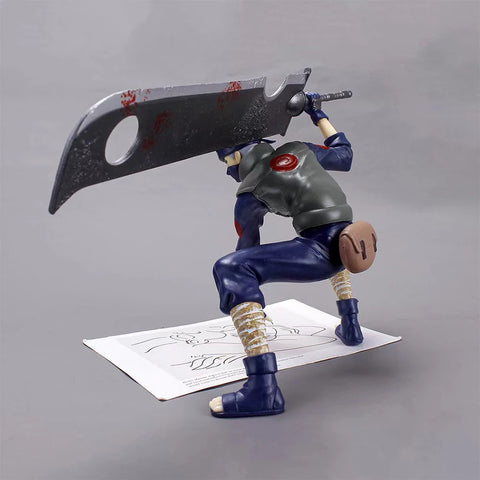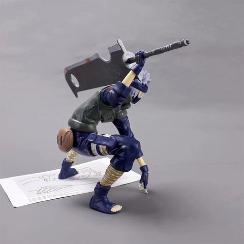 Pose dynamique : Kakashi en pleine action avec la légendaire épée de Zabuza.