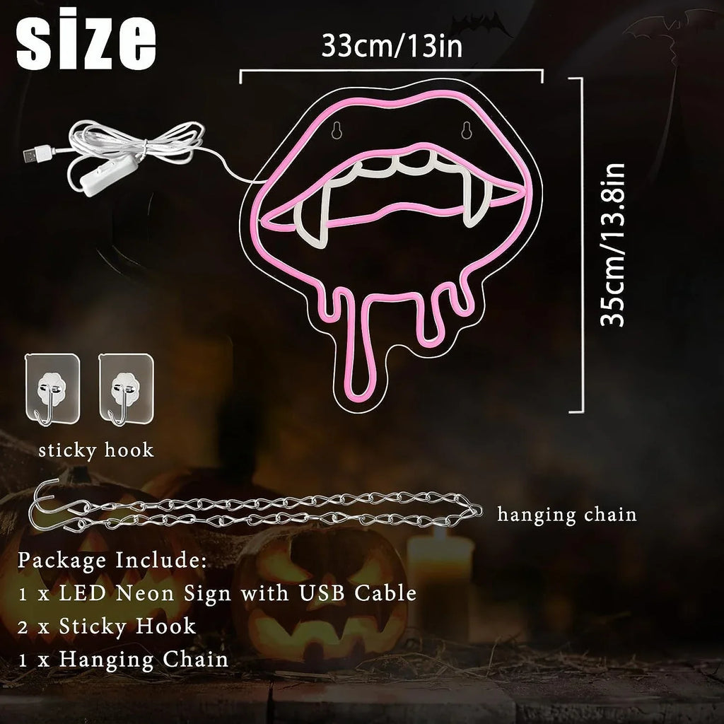 Apporte une touche dark & sexy à ta déco avec ce néon lèvres de vampire dégoulinant. Plus qu’une simple lumière, c’est une véritable œuvre lumineuse qui combine style gothique, vibe sensuelle et atmosphère mystérieuse.